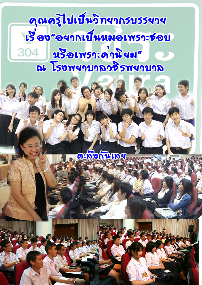 - "วิทยากรบรรยายเรื่องอยากเป็นหมอเพราะชอบหรือค่านิยม" ที่โรงพยาบาลวชิรพยาบาล